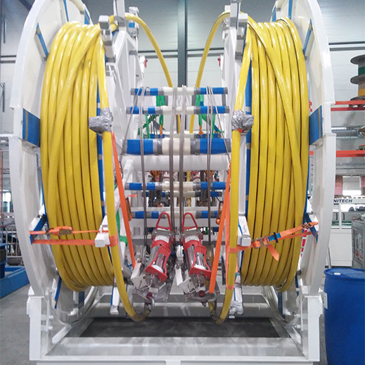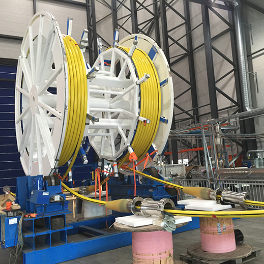 Centerpiece of the UNITECH Stord facility in Norway is a 250M KR investment in a vertical bundling machine and separate extrusion line for the manufacture of HFL / EFL and Umbilical. The quayside plant’s deepwater access allows for loading and unloading of 1,000 ton carousels for umbilical and cables in as little as three days.
