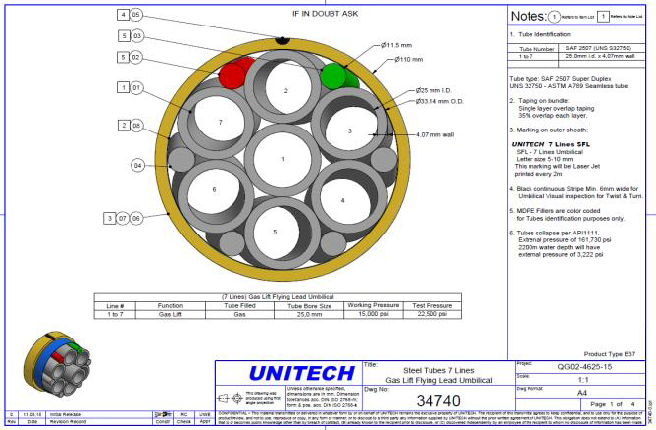 The UNITECH team includes experienced cable makers and design experts. All design work for HFLs and umbilical is available in-house using Umbilicad software. We work closely with Ultra Deep™ Engineering on VIV analysis, Crushing analysis (FEM) and Installation analysis.